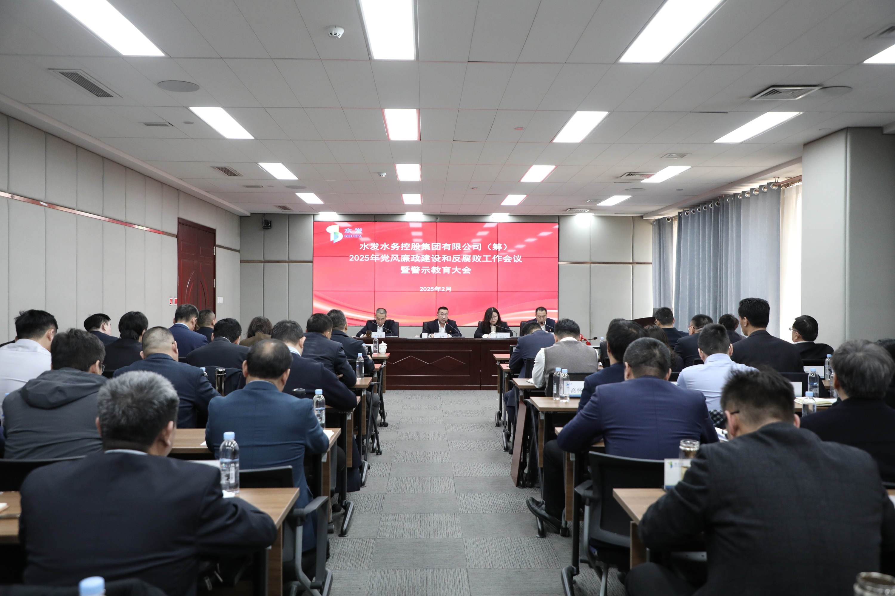 2月21日,水發(fā)水控集團召開2025年黨風廉政建設(shè)和反腐敗工作會議暨警示教育大會。水發(fā)集團紀委紀律檢查一室主任司美紅到會指導(dǎo),水發(fā)水控集團黨委書記、董事長王忠華出席會議并講話,黨委副書記、副總經(jīng)理(主持經(jīng)理層工作)晉學(xué)明主持會議。