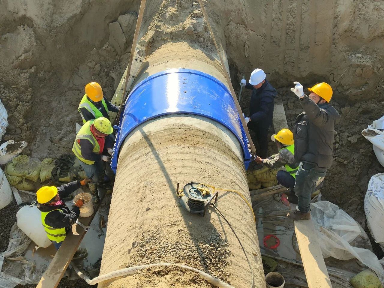 情況緊急,發(fā)現(xiàn)漏水后,工程管理部搶修人員以最快的速度奔赴現(xiàn)場,仔細檢查上下游閥門,憑借豐富經(jīng)驗和專業(yè)技術,初步鎖定管線破損的位置與深度??蛻舴詹康谝粫r間將漏水情況向建設交通局報告,并積極協(xié)調現(xiàn)場開挖工作,爭分奪秒推動搶修進程。與此同時,供水調度中心發(fā)揮著“智慧大腦”的作用,迅速調配惠澤水廠對第一、第三供水管線進行精細調節(jié),精準關閉第四供水管線破損位置的上下游閥門,一場保障居民用水不受影響的“戰(zhàn)役”就此打響。 搶修人員先對管體保護層進行打磨,如同給受傷的“血管”清創(chuàng),再均勻地涂抹上搶修劑修補創(chuàng)口,最后用定制的哈夫節(jié)緊緊包裹。完成修復后,在管底鋪上厚厚的碎石墊層,給管道安上了一個穩(wěn)固的“床墊”,確保其在注水后穩(wěn)穩(wěn)當當,不會沉降。這種方法相較于傳統(tǒng)的拔管、換管方式,不僅降低了成本,還大幅縮短了工期,為盡快恢復供水爭取了寶貴時間。 搶修人員全力以赴,輪流作業(yè),經(jīng)過近30個小時的連續(xù)奮戰(zhàn),終于完成修復,管道再次流淌著清澈的水流,用戶的用水需求得到了堅實保障。 參與搶修的每一位員工都是守護用水安全的衛(wèi)士,他們用行動詮釋著水發(fā)人的擔當精神,也收獲了廣大用戶的高度認可。下一步,供水集團將不斷提升服務質量,為濱海區(qū)企業(yè)、居民用水保駕護航。